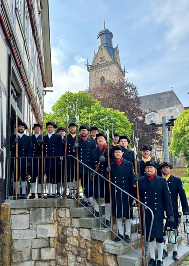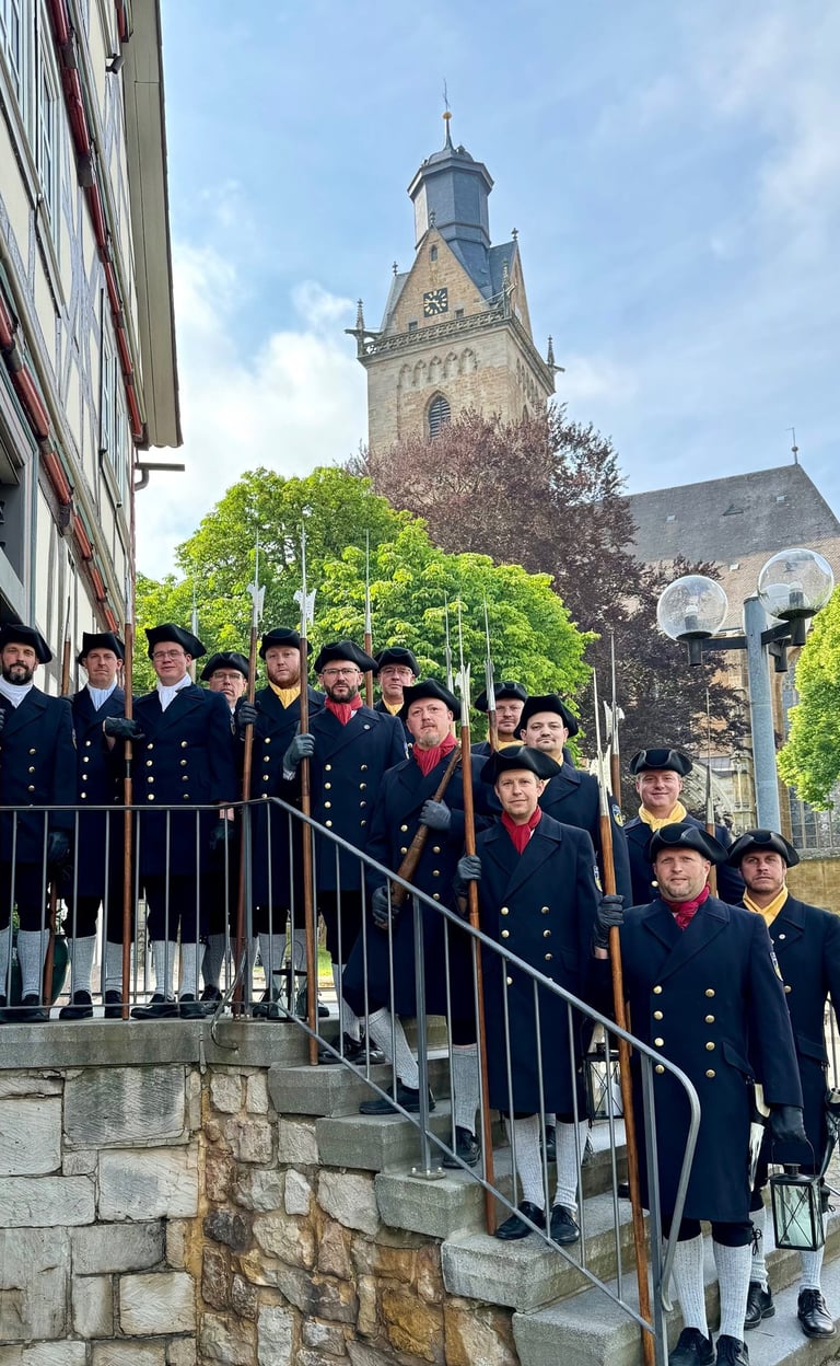 Regelmäßig nehmen wir als Teil der Schützengilde Korbach an historischen Schützenfesten und Freischießen von Landau bis Korbach teil. Wer uns beim Festzug vom Straßenrand aus sieht, kann uns gern den Korbacher Nachtwächtergruß "Wer da?!?" zurufen :-)