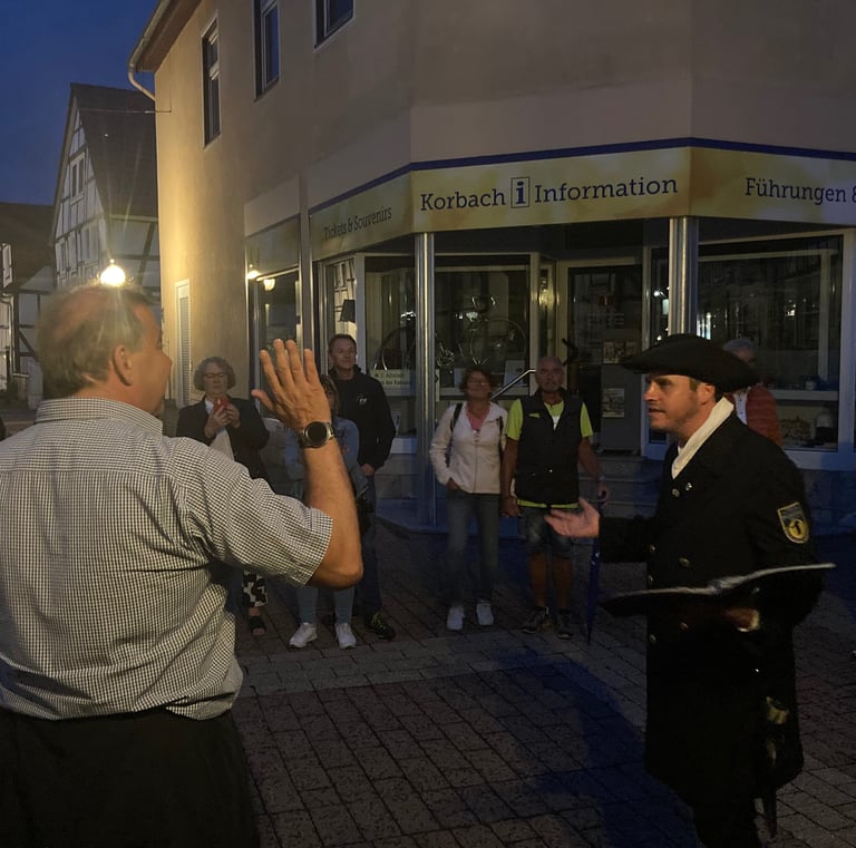 Erleben Sie die Geschichte Korbachs mit unseren ehrenamtlichen Nachtwächtern bei historischen Führungen.